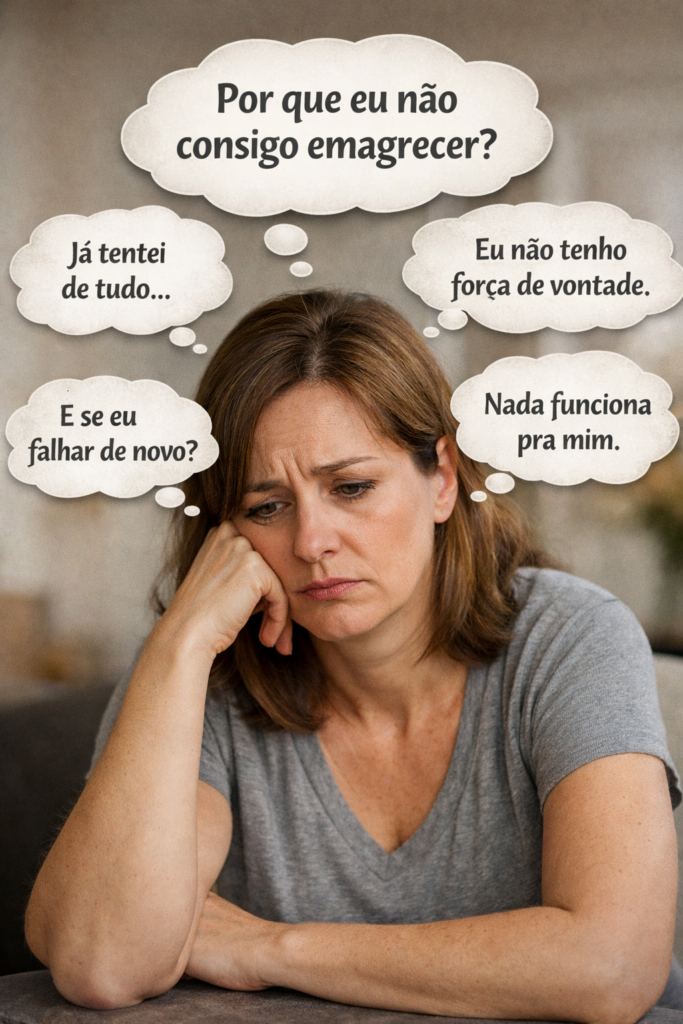 Não é mais uma dieta restritiva ou um curso cheio de teoria, mas sim um passo a passo simples e aplicável, que ensina como emagrecer usando os fundamentos certos, adaptados à sua rotina e à sua realidade.